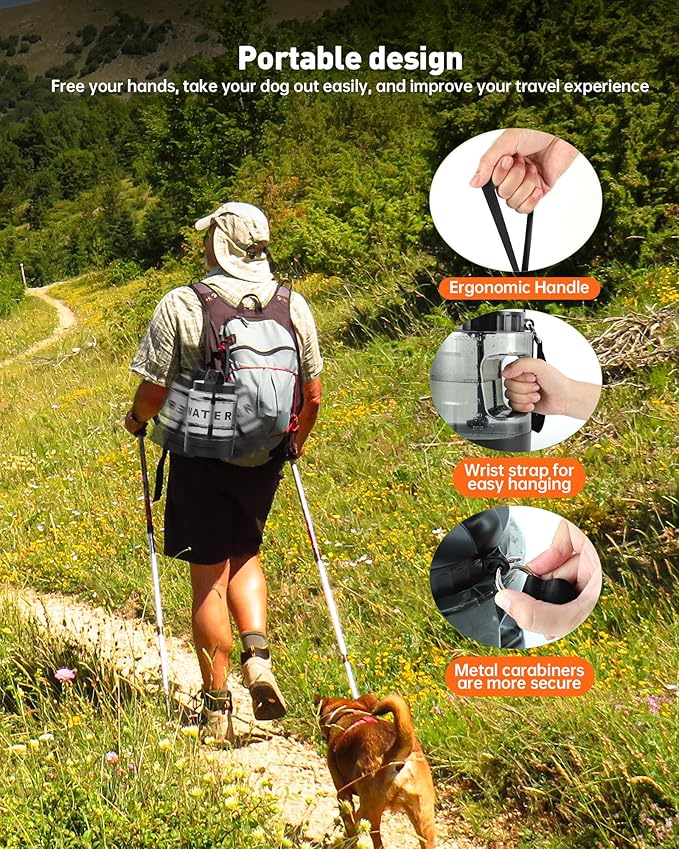 - 77 oz Large Capacity Design: This portable dog water bottle has a large water storage capacity of 77 oz, one-time hydration lasts longer. For medium to large dogs and families with multiple dogs, there is no need to add water frequently. There is no need to worry about the dog being thirsty or having no water during long outdoor activities, which increases the owner's sense of security when traveling