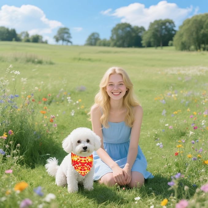 - Tie Dye bandanas material: polyester,breathable,soft and reversible;hemming seam edge stitching,sturdy and durable;can folded, easy to store and carry;can adjust the length according pet neck circumference