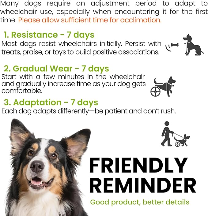 - 【Tool-Free, Quick Assembly】 This dog wheelchair for back legs can be assembled in minutes with no tools required. The secure snap-on system makes setup easy, and it stays stable during transport—no disassembly needed.