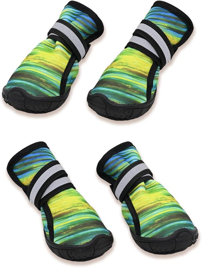 Dog Shoes for Small Medium Large Dogs,Neoprene Dog Booties & Paw Protectors for Hiking Hot Pavement Hardwood Floors,Quick-Drying Fabric Dog Boots W/Perforated soles for Flowing Water (Green-5)