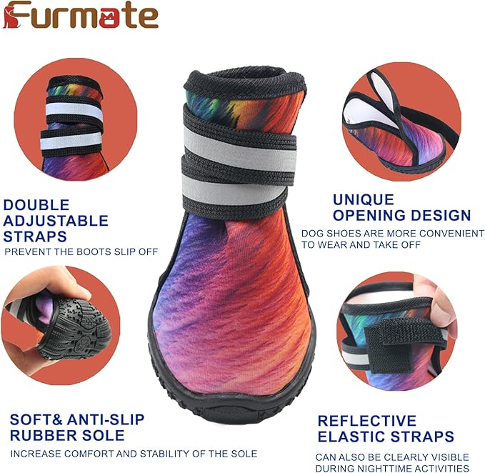 - Wear-Resistant & Anti-Slip: The durable rubber sole of Furmate dog booties provides superior traction, preventing slips on various surfaces. The non-slip design is perfect for active dogs