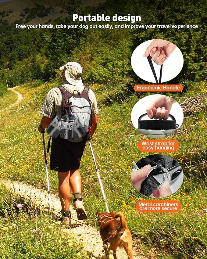 - Enhanced durability: This water bottle for dogs on the go adopts a thickened bottle body + anti-fall design, which is durable and can be used in high-intensity scenarios such as outdoors, camping, walking, beach, hunting, etc., reducing the risk of damage, and can be used for a long time without frequent replacement