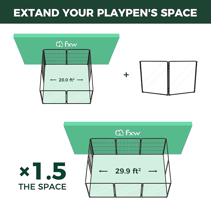 - Modular Design for Flexible Layouts: This puppy playpen connects easily into multiple layouts—square, rectangle, or L-shape. Expand your dog fence anytime by adding extra panels to fit your home.