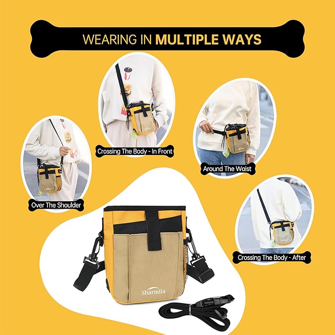 - Durable Construction: Crafted with high-density Oxford waterproof fabric exterior and heavy-duty lining, this dog treat bag withstands muddy trails and rainy walks. Three color variants (khaki/army green/yellow) use fade-resistant dyes β after 100+ washes, colors stay vibrant as day one.