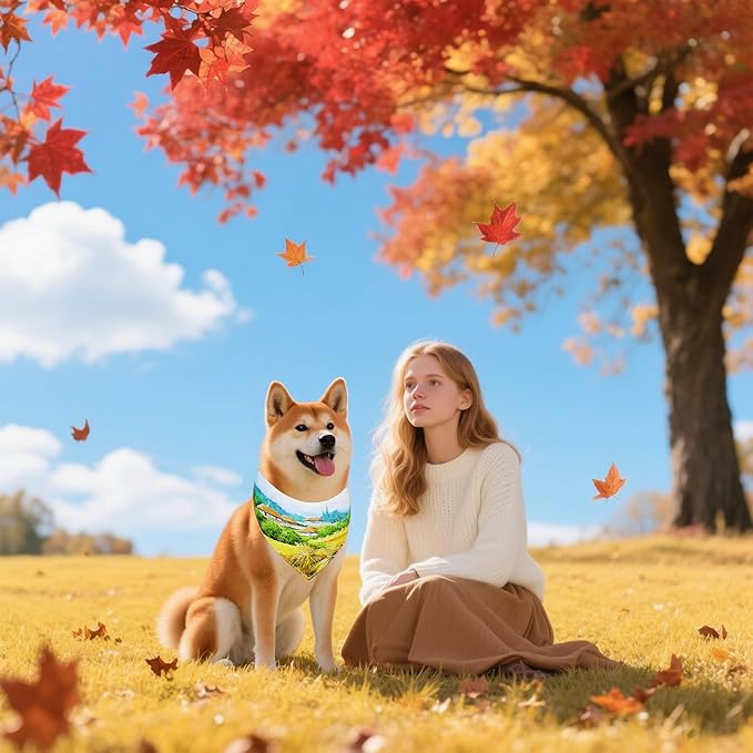 - Fall dog bandanas materials:polyester,breathable and soft reversible;hemming seam edge stitching,sturdy and durable;can folded,easy to store and carry;can adjust the length according pet neck circumference