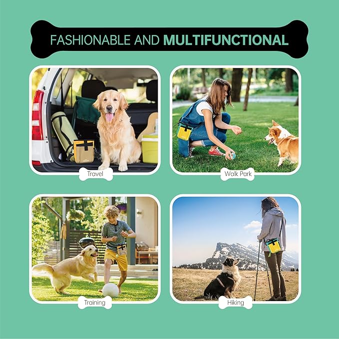- Durable Construction: Crafted with high-density Oxford waterproof fabric exterior and heavy-duty lining, this dog treat bag withstands muddy trails and rainy walks. Three color variants (khaki/army green/yellow) use fade-resistant dyes β after 100+ washes, colors stay vibrant as day one.