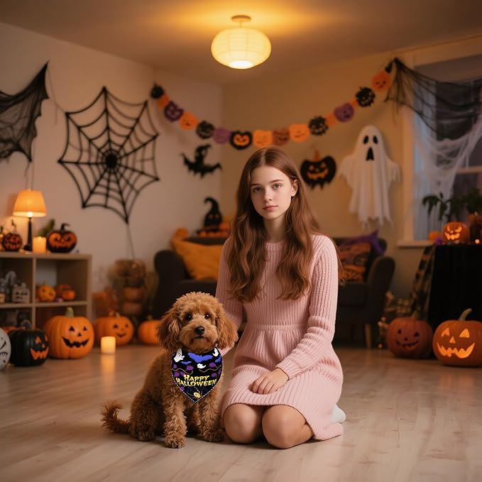 7 Pcs Holiday Dog Bandanas for Small Dogs Cats Stitching Edge Holiday Dog Bandana Halloween Puppy Scarves Grooming S