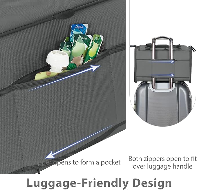 - [Portable, Foldable & Easy to Carry]: Designed for convenience, the carrier can be carried by hand, over the shoulder, or attached to luggage handles. Foldable for compact storage. Includes a removable dual-sided cushion (warm fleece for winter, breathable fabric for summer).