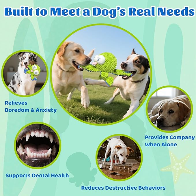 - Durable Tug of War Dog Toys: Crafted from soft yet durable fabric with reinforced stitching, this interactive octopus toys withstands tugging and biting, and features a removable, machine-washable cover for easy cleaning and lasting freshness.