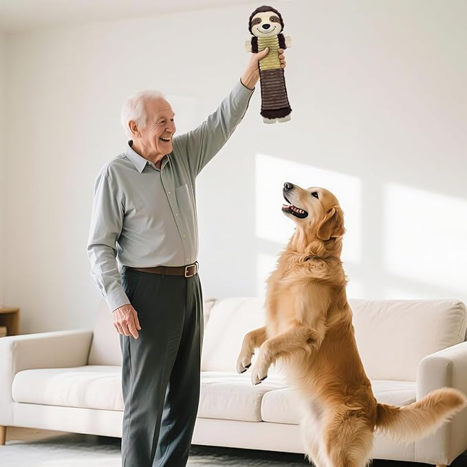 - Great Value and Durable Plush Set: This assortment value bundle plush pet toy contains 5 pack cute animals: Donkey,sloth. The funny and enrichment toys help dogs to exercise more and improve their health. A good dog products for boredom and stimulating. They can do chewing and teething, tug of war games. Quality interactive playing time together will also increase their bond with owner. It's the best gift supplies for dogs Birthday Christmas Halloween or any holiday.
