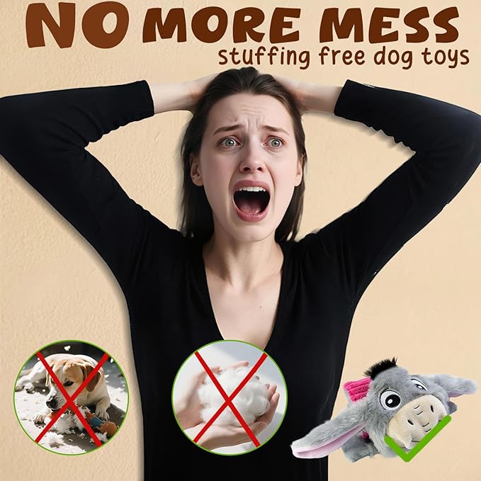 - No Stuffing Squeaky Toys: Crinkle paper all over the body and a squeaker in the head, keeping your dog entertained for hours. These stuffing-free dog toys eliminate the risk of choking and reduce household cleaning burdens by preventing filler spillage during your puppy’s tugging and chewing. Enjoy a safer, cleaner play experience with our durable non-stuffed dog toys.
