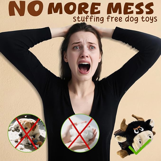 - No Stuffing Squeaky Toys: Crinkle paper all over the body and a squeaker in the head, keeping your dog entertained for hours. These stuffing-free dog toys eliminate the risk of choking and reduce household cleaning burdens by preventing filler spillage during your puppy’s tugging and chewing. Enjoy a safer, cleaner play experience with our durable non-stuffed dog toys.