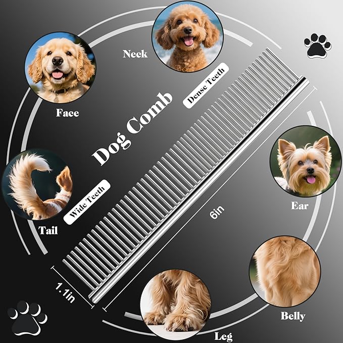 - 【Skin Friendly】The 100% high quality stainless steel dog comb features Rounded Pins that gently massage skin, stimulate circulation, and ensure lasting durability