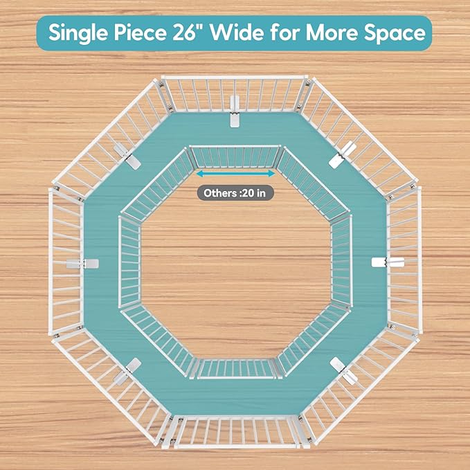 - Pet Gate With Door: The dog pet gates include a walk-through door that is designed foropening in both directions, convenient for you to enter and exit, whether it's to play with your pet, feed them, or clean up, without compromising the integrity of the enclosure