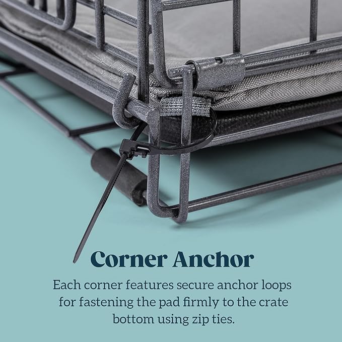 - Constant Comfort - Filled with premium polyester fiberfill, this portable dog bed ensures your pup stays cozy and comfortable whether in their crate or on the go. Each corner features secure anchor loops for fastening the pad firmly to the crate bottom using ties
