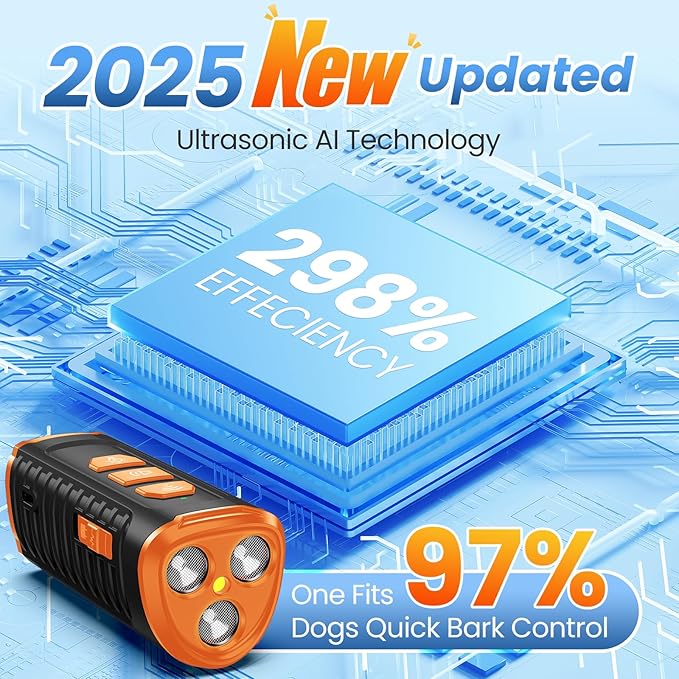 - 3X Fast, Humane, No Barking:Say hello to a quieter home! Using triple ultrasonic emitters, this ultrasonic dog training device stops unwanted behaviors like barking, chewing, or biting quickly and effective. Thealternating 25kHz fixed and 22–29kHz variable frequencies keep dogs from tuning it out. No pain, no harmful—just calm dogs and a stress-free home. Barks no more made easy.