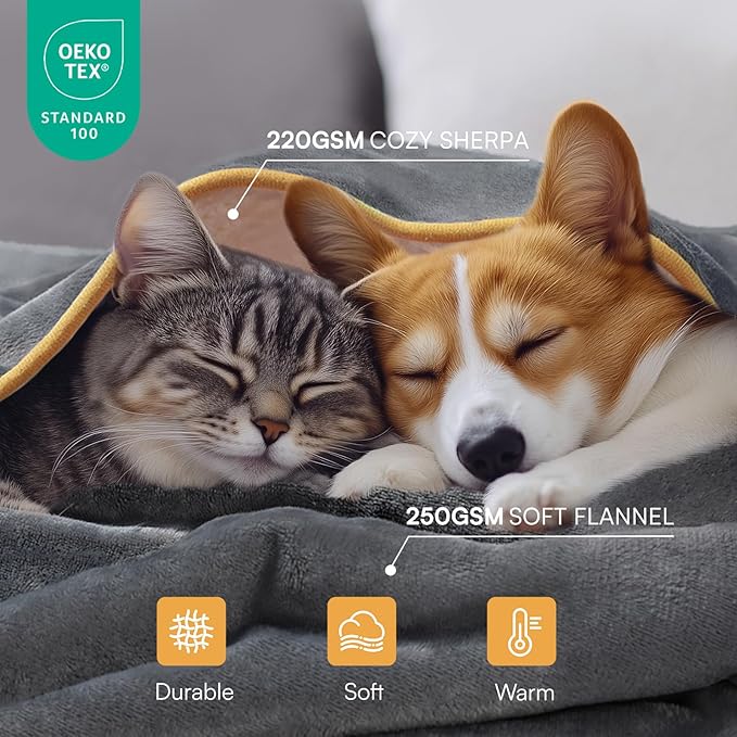 - Reversible & All-Season Comfort – One side features thick Sherpa fleece for winter warmth, the other side offers smooth flannel for a soft, breathable feel in warmer months. Your pets stay cozy year-round.