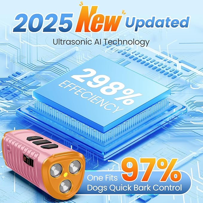 - 3X Ultrasonic Tech – Safer, Faster, More Effective: Dog Bark Deterrent Device, Barks no more dog training device. No more annoying constant barking! with Triple Ultrasonic Emitters, Our Dog Bark Deterrent Device provide faster training results with Zero Pain, No Stress. Two ultrasonic frequency (Fixed 25kHz + Variable 22-29kHz), our Anti Barking Device for Dogs prevents dogs from adapting to a single frequency, ensuring long-term effectiveness.