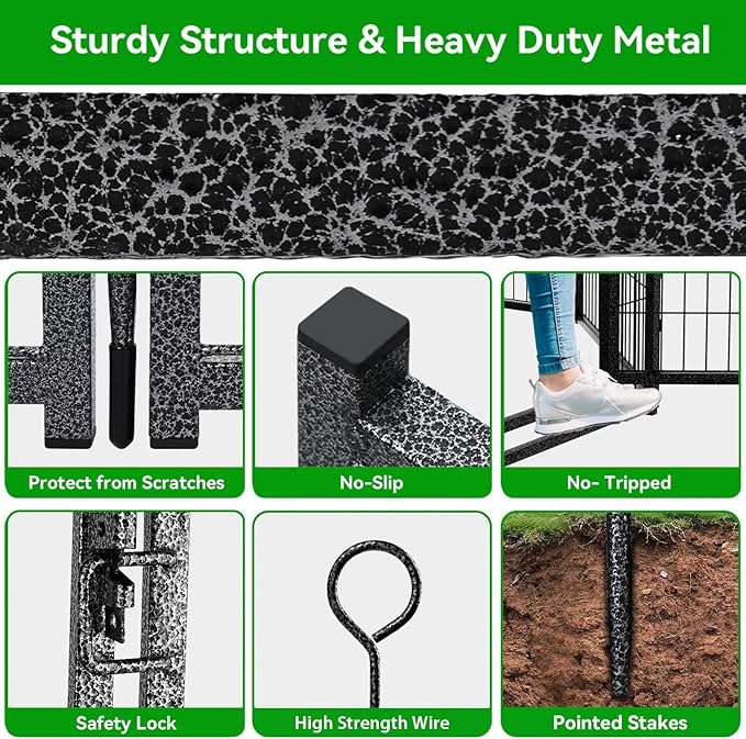 - 【Sturdy Structure & Stable Ground Stakes】Kfvigoho metal stakes are designed round top, which can be pounded into the ground for greater stability, this dog fence with sturdy structure, so dogs can't knock it down and keep them confined in a safe area, the pet pen works great for small, medium and large dogs and rabbits, ducks, turtles etc