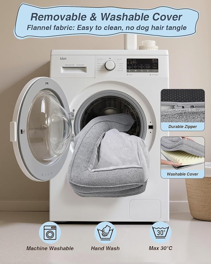 - Ultra-Soft Surface: The washable dog bed uses velvety short-pile fabric that’s warm yet breathable, pampering senior dogs’ fragile skin, chasing away the chill for deeper sleep. The waterproof dog bed prevent dog hair tangles for low-maintenance care.
