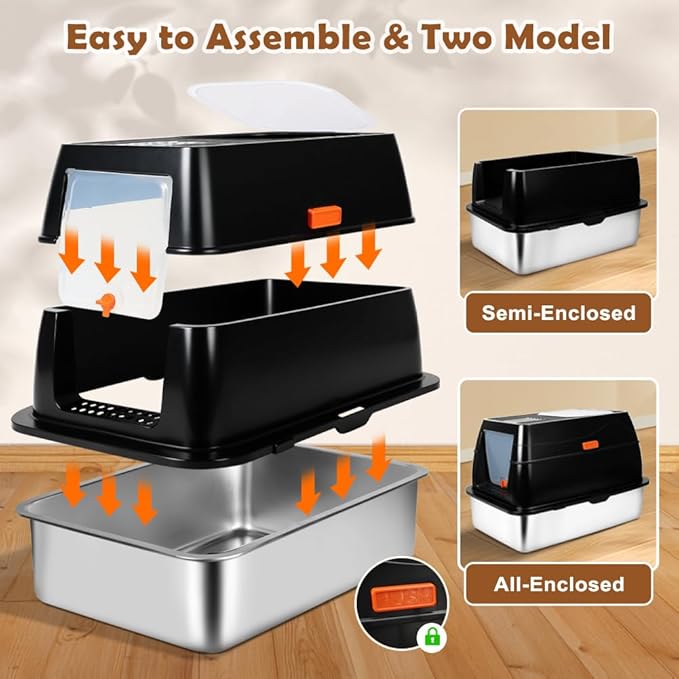 - EASY-TO-CLEAN DESIGN - The smooth stainless steel surface makes it simple to rinse and wipe down. Its modular one-second disassembly allows you to lift the metal litter pan quickly for cleaning, without having to move other parts. Easy to take care of cleaning and create a clean and fresh toilet environment for your cat