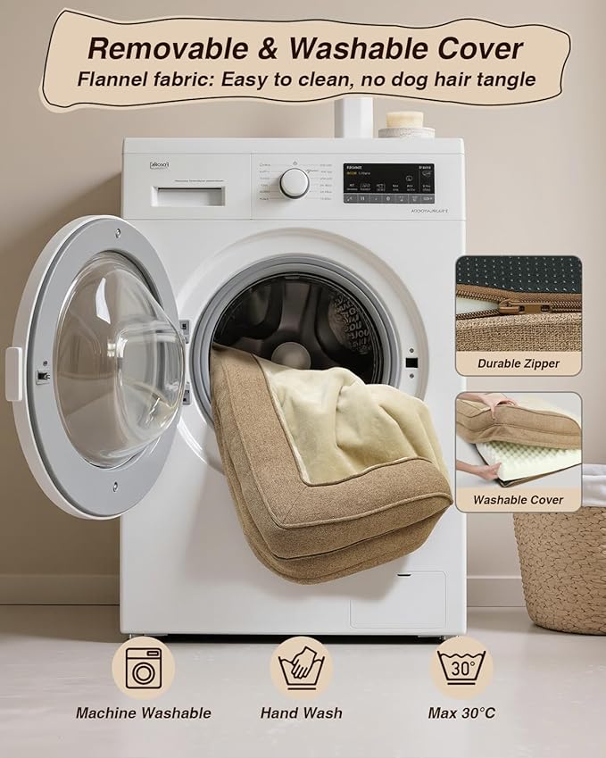 - Ultra-Soft Surface: The washable dog bed uses velvety short-pile fabric that’s warm yet breathable, pampering senior dogs’ fragile skin, chasing away the chill for deeper sleep. The waterproof dog bed prevent dog hair tangles for low-maintenance care.