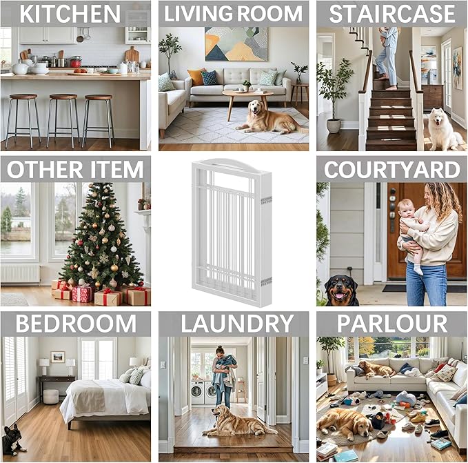 - Safety Protection——Dog gate will blocking pets from entering designated areas (e.g., kitchen, bathroom, or stairway) prevents access to hazardous items, safeguarding both pet safety and furniture integrity.