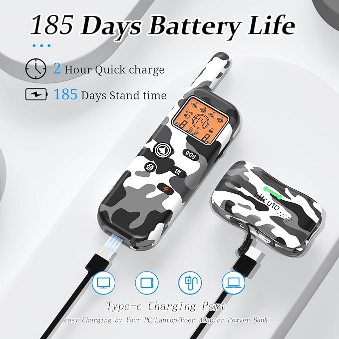 - 185-Day Battery & IPX7 Waterproof Collar】 Built for outdoor adventures – the "wireless dog fence receiver collar" charges fully in 2 hours, lasting 84+ hours in active mode (IPX7 waterproof for swimming/rain). Remote control supports 185-day standby to maintain invisible fence protection year-round.