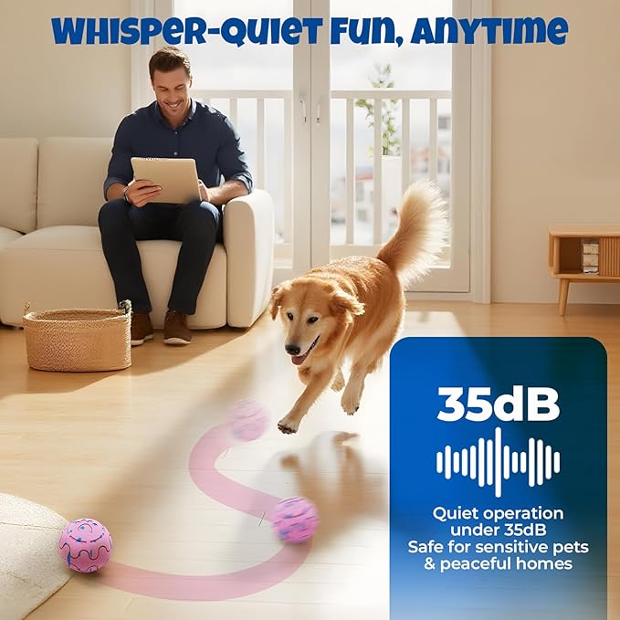 - Real Human-Dog Interaction: Bouncy & Throwable Dog Toys: Toss It, Chase It, Love It – Unlike many self-rolling dog balls, this one is made for both autonomous motion and human-dog bonding. Its high-bounce, lightweight build lets you throw it like a regular dog ball. Reinforce obedience, increase connection, and have fun together