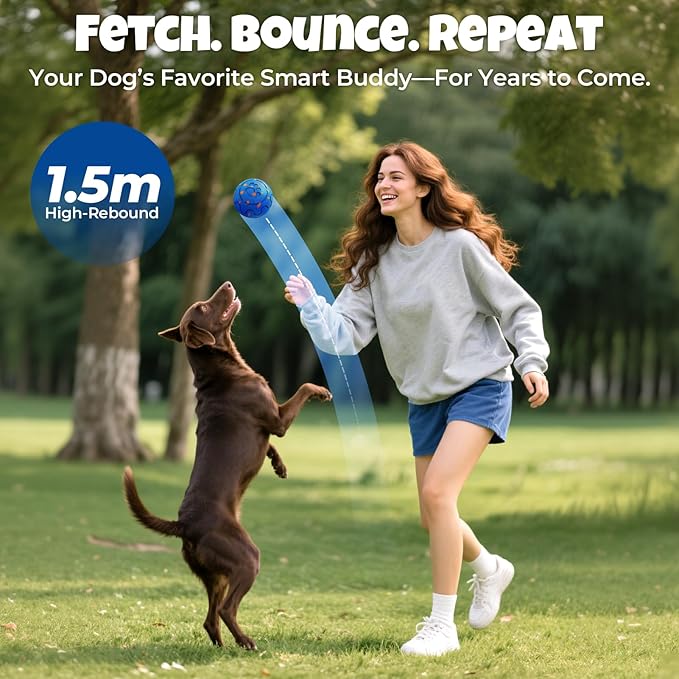 - Real Human-Dog Interaction: Bouncy & Throwable Dog Toys: Toss It, Chase It, Love It – Unlike many self-rolling dog balls, this one is made for both autonomous motion and human-dog bonding. Its high-bounce, lightweight build lets you throw it like a regular dog ball. Reinforce obedience, increase connection, and have fun together