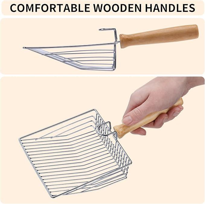 - 🐱【High Quality & Non-Stick】Stainless steel litter scoops are easier to clean,just a quick rinse and ready for storage or reuse and resistant to acidic urine. It can effectively help preventing rust and corrosion for long-lasting use, ensures that the pooper lifter will not break, squeeze or bend.