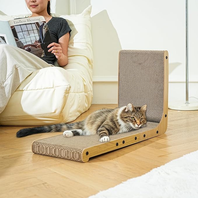 - Space-Saving L Shape for Smarter Scratching The L-shaped structure maximizes corner use while guiding your cat to scratch in designated areas. Works both vertically and horizontally, helping reduce wear on your furniture and walls while saving space.