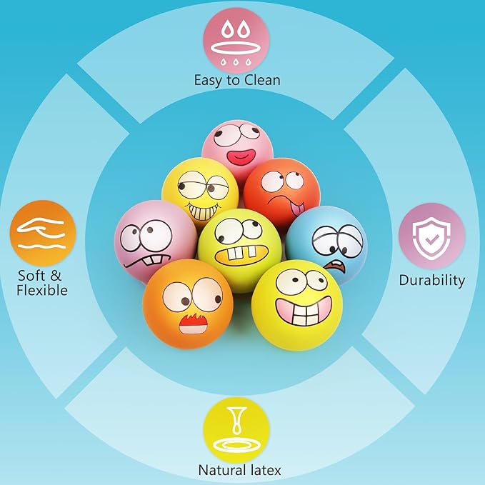 - Round Balls: Features 8 vibrant colors in a cute, round design. Easy to squeak for instant fun, perfectly sized for carrying, and designed as non-stuffing toys.