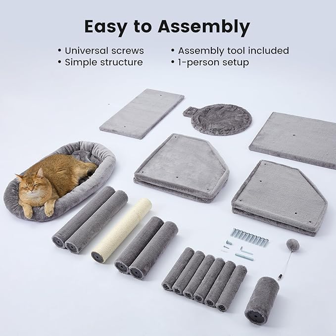 - ✨【2. Corduroy Cat Tree, Less Shedding, Easier to Clean】 Compared to fluffy plush, the corduroy surface traps less fur and dust. Simply wipe down or vacuum for easy maintenance.