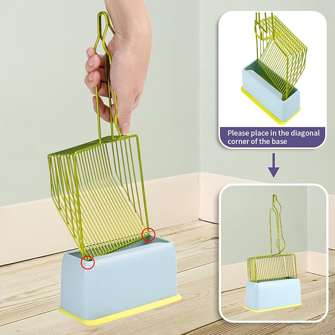 - 🐱【Cat Litter Scooper With Holder】Our cat scooper set comes with a storage stand, don't worry about a used litter scoop staining your floor or carpet, The two-piece litter scoop holder is easy to remove, Simply wipe down or rinse with water