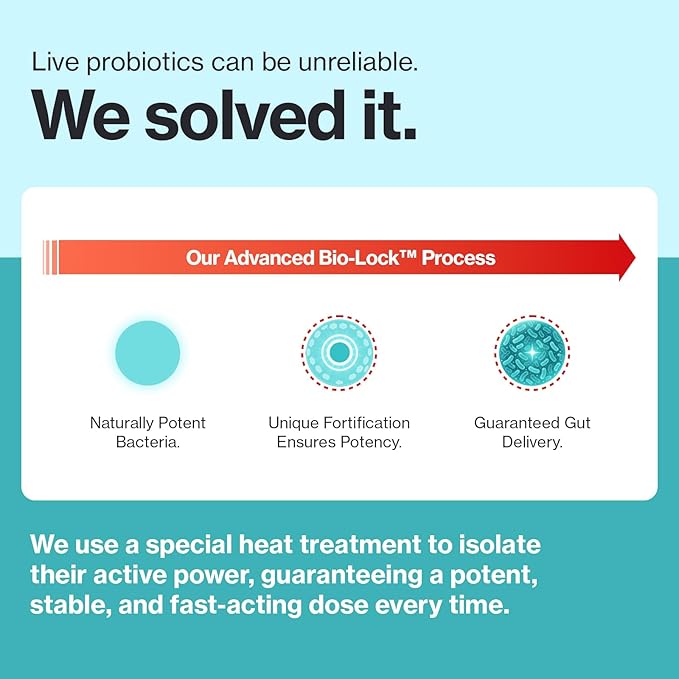 - 🧪 Gentle, Stable Science Powered by our Advanced Bio-Lock probiotic process. Designed to stay alive through heat and acid, reaching the gut where it calms digestion and strengthens immunity, gently and without bloating.
