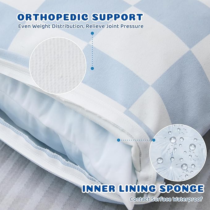 - 【High-Quality Gel Memory Foam Core】 The dog mattress is filled with blue gel memory foam, which is soft to the touch, and the full-wrapped design makes the pet feel as if it is being hugged by warmth. The dense cotton filling is not easy to collapse. After continuous compression testing, the rebound ability and thickness can still maintain an excellent level