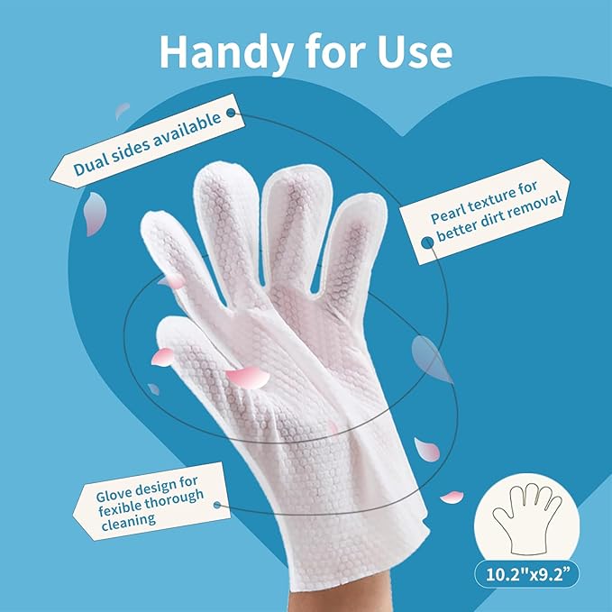 - Pet Gloves with Deep-Clean Texture: Dual-sided pearl-textured surface reaches deep-clean grooves in paw pads and ear folds for enhanced use. Provides gentle massage stimulation to relax pets during grooming. Tear-resistant dual-layer fabric withstands rigorous use. A reusable solution replacing pet wipes for dogs, paw wipes for dogs, and pet wipes for cats