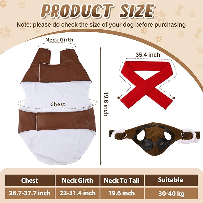 - Size Guide: this Pilot Costume Set is designed with neck circumference of 25-31" and a chest circumference of 31-39", suitable for extra large dogs (weight of 30-40 kg); Please do can check the size chart picture before purchasing