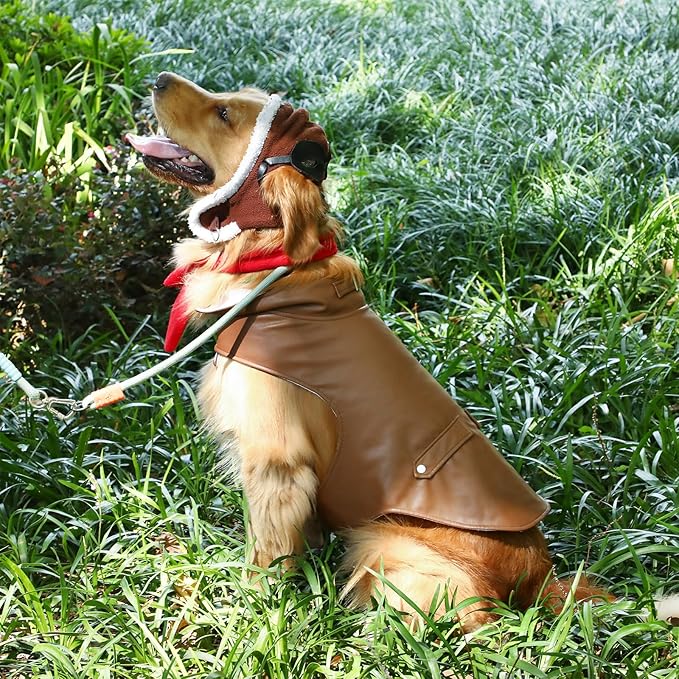 - What You Get: 1 pcs of Aviator Pet Leather Jacket, 1 pcs of Pilot's Hat with Goggles and 1 pcs of Scarf, which creates a stylish look for your dog and is ideal for your Halloween fashion street stroll