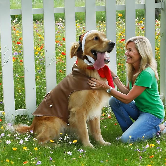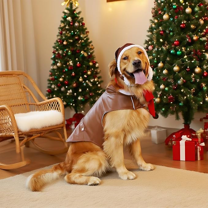 3 Pcs Dog Pilot Costume Set Halloween Dog Costume Aviator Pet Leather Jacket, Pilot's Hat with Goggles and Scarf Set Funny Cosplay Outfit for Extra Large Pet