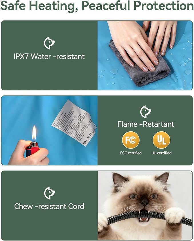 - Multi-Safety Guards: With UL certification, this outdoor cat house insulated stops overheating and electrical leakage risks. Its waterproof build adapts to cats' accidental spills, and chew-resistant wires prevent shock from cord-biting. It fully protects your cat, bringing you complete peace of mind.
