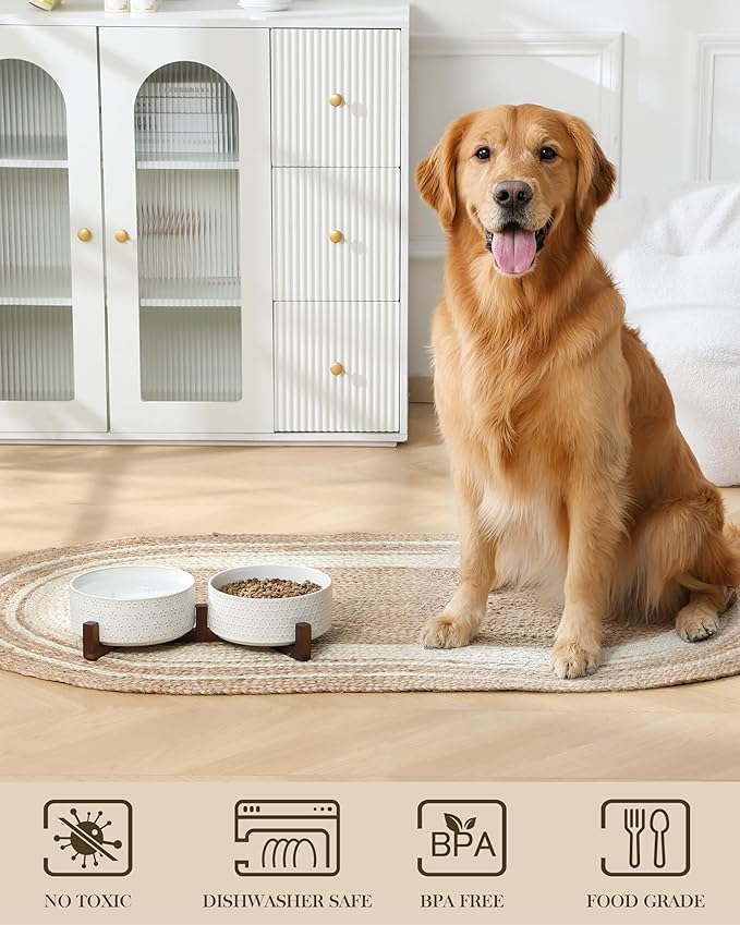 - 🦴【HIGH-QUALITY CERAMIC】Made from food-grade, lead-free, handcrafted ceramic, this bowl is non-toxic, environmentally friendly, and safe for your pet. It uses GLIDECOAT glaze technology, ensuring a smooth surface that is easy to clean, stain-resistant, and odor-free. Vets highly recommend ceramic pet bowls to keep your dog away from chin disease and other issues.