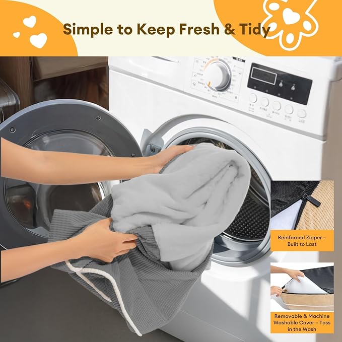 - 【Removable & Machine-Washable Cover for Easy Cleaning】Maintaining a clean pet space is simple—just unzip and remove the cover for machine washing. This removable washable dog bed cover keeps the bed fresh and odor-free, making it ideal for busy households or dogs prone to shedding