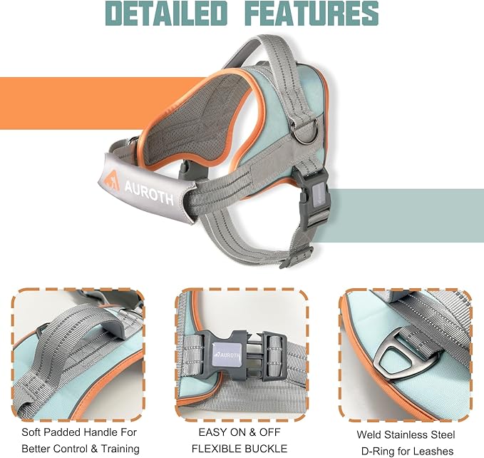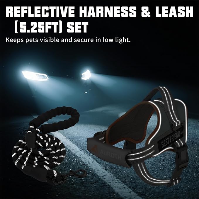 AUROTH Dog Harness and Leash Set, Soft Padded Service Dog Vest with 5.25FT Dog Leash, No Choke, Easy On Pet Vest, Adjustable Reflective No Pull Dog Harness for Large Dogs, Easy Walking and Training