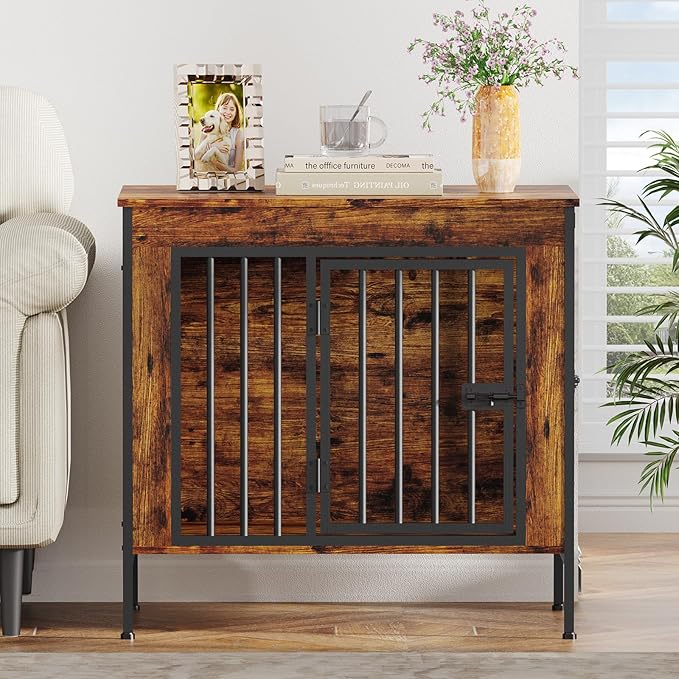 - 【Versatile Dog Crate Table】: Brief and retro dog furniture crate is suitable for various decoration styles. It is not only a dog crate for dogs, but also a TV stand / nightstand / side table to place decorations and storage. The huge size ensures dogs have a comfortable and spacious living area, while also maximizing the use of the house's space.