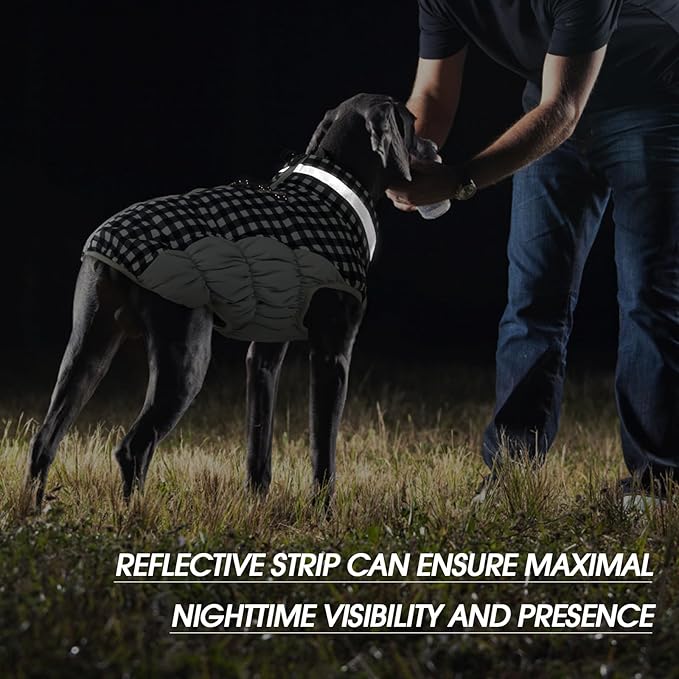 FUAMEY Dog Coat for Large Dogs,Waterproof Dog Winter Jacket with Harness Built in Puppy Cold Weather Coats Reflective Pet Vest with Zipper Warm Fleece Dogs Snowsuit Windproof Checkerboard XL