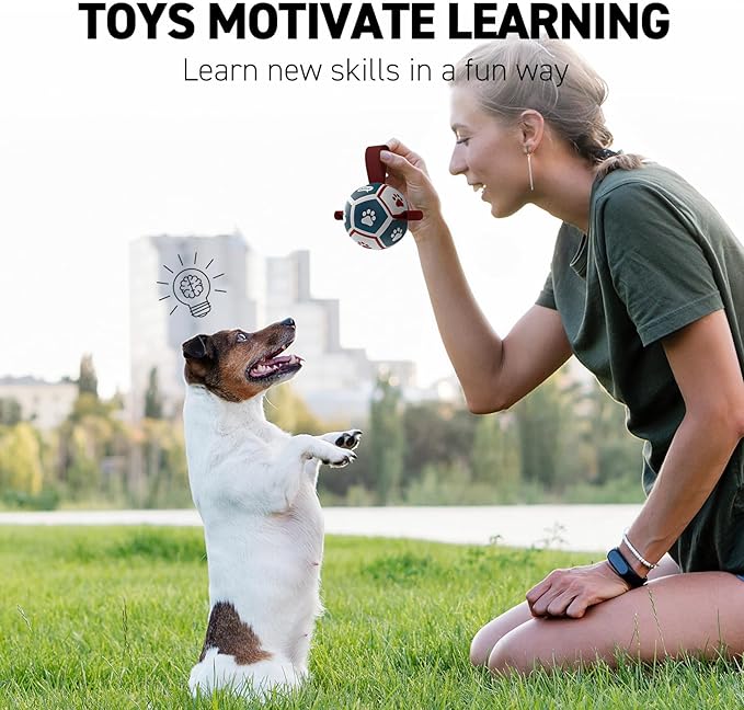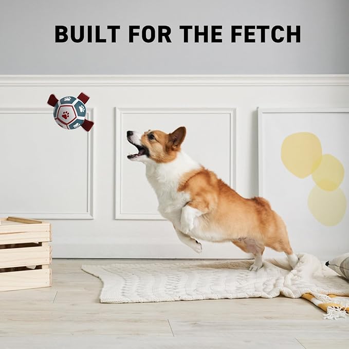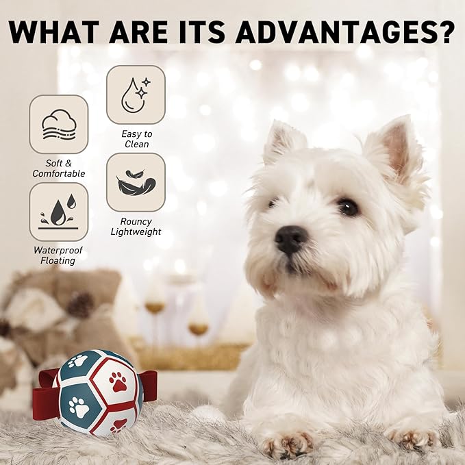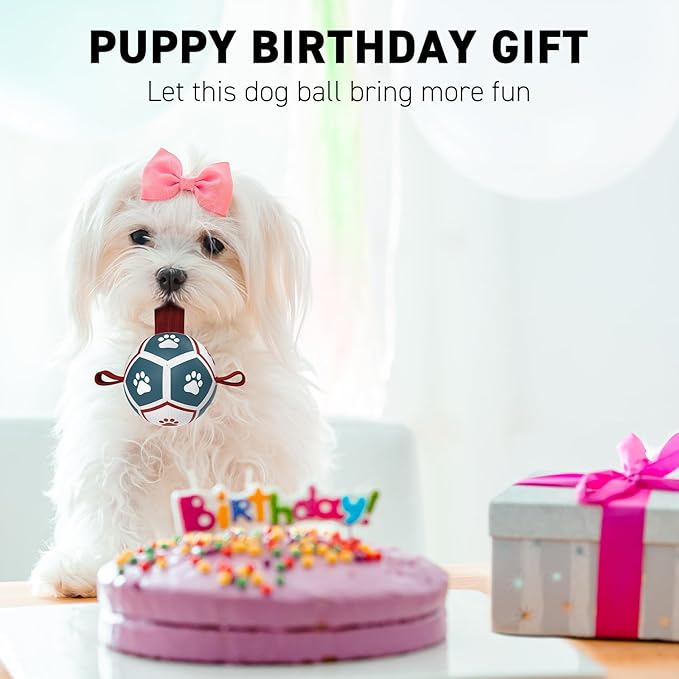 - PUPPY SOCCER BALL:these puppy toys comes with reinforced one long strap for throwing and tug-of-war games, and two short straps for your dog to grab and carry. Perfect for interactive play and training