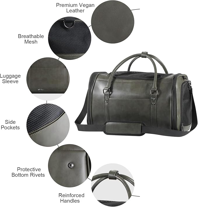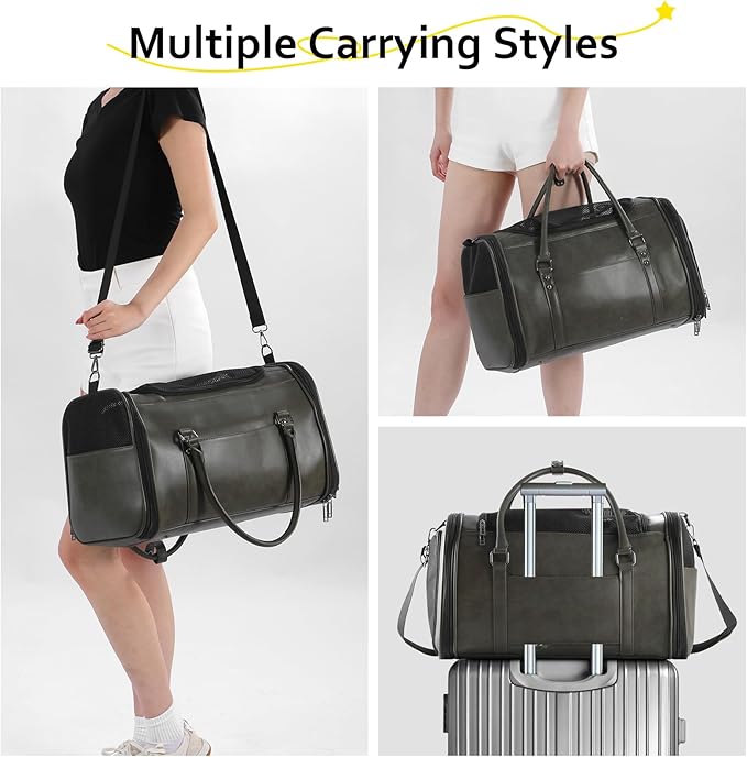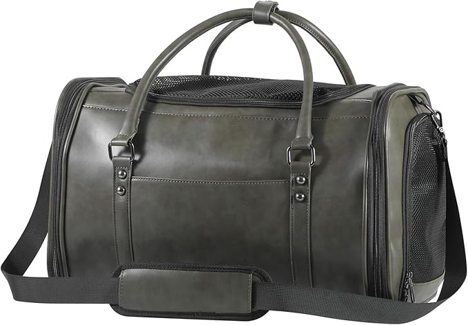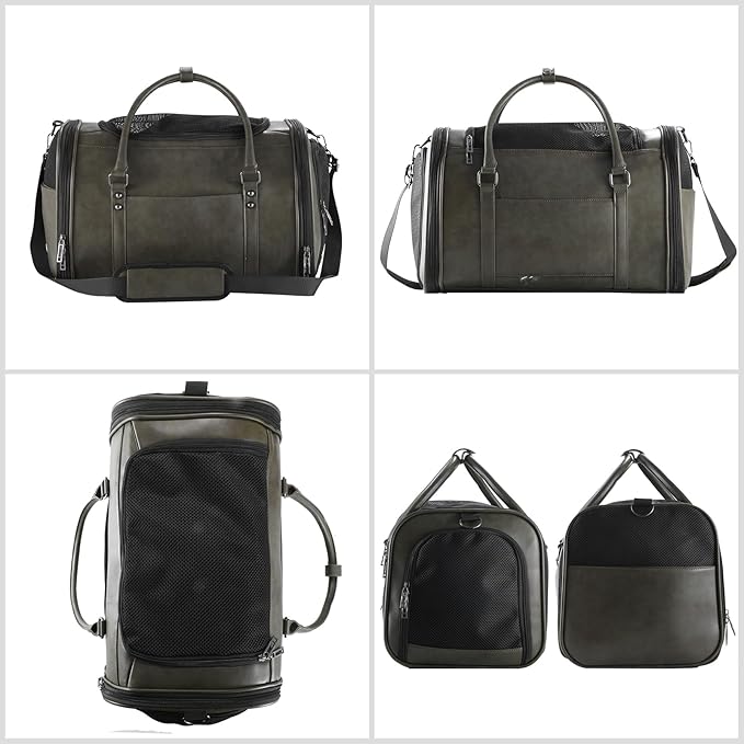 Stylish Leather Pet Carrier for Small Dogs and Cats Up to 15 lbs, Airline Approved Lightweight Travel Tote with Breathable Mesh and Shoulder Strap Green