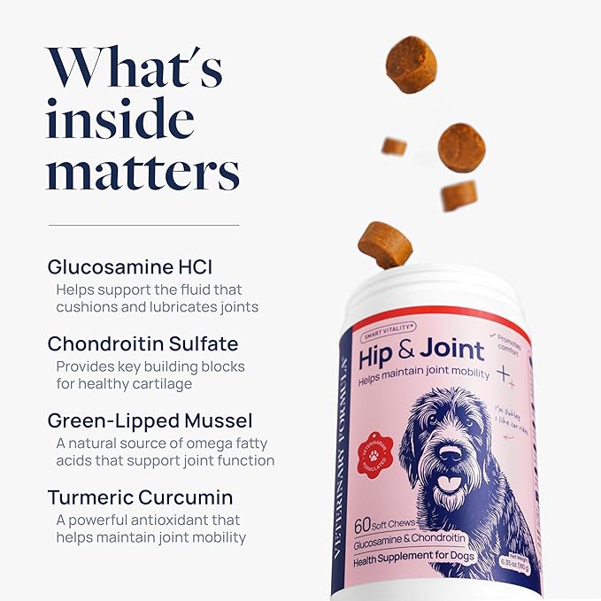 Veterinary Formula Smart Vitality Hip & Joint Supplement for Dogs with Glucosamine – Dog Joint Support, Dog Supplements for Mobility & Flexibility, 60ct